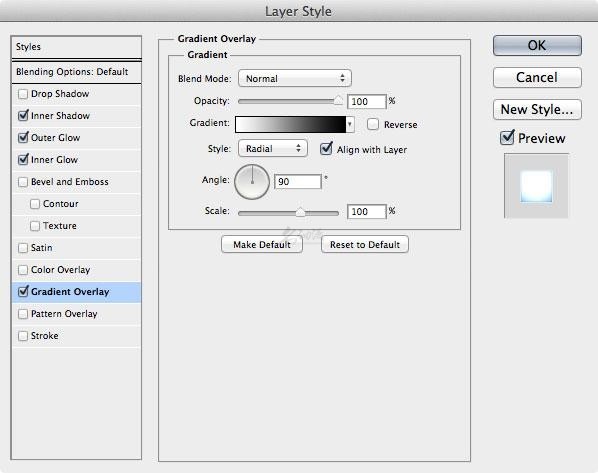 要点十三:接着打开图层样式,从渐变叠加开始设置。在跳入渐变编辑器之前,请确保将风格更改为镜像。如图所示: