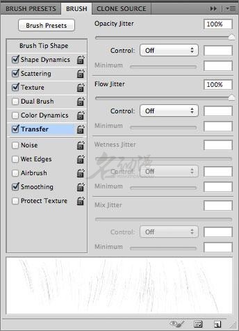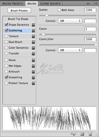 要点九:最后点开其他动力学面板。这是将混淆每个笔划的不透明度。将不透明度和数量抖动都设置为100%。如图所示: