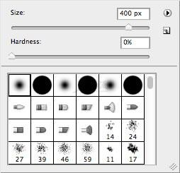 打开图层面板添加图层蒙版,现在在画笔 工具处于活动状态的情况下,选择一个漂亮的大而柔软的画笔。现在在画笔 工具处于活动状态的情况下,选择一个漂亮的大而柔软的画笔。如图所示: