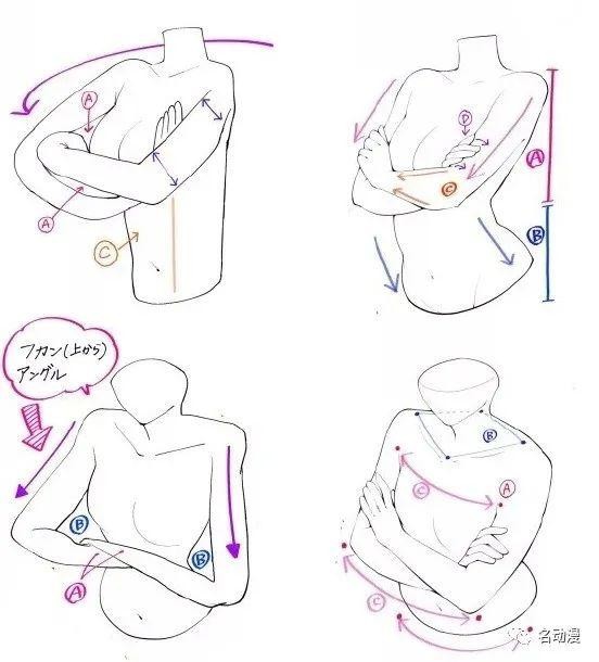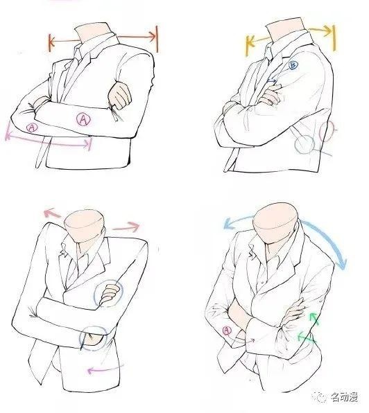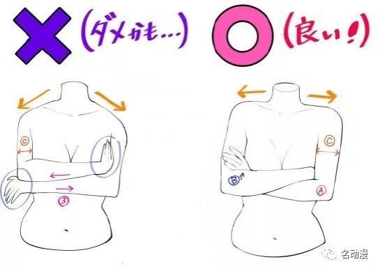 误区:一些看起来非常小白的错误画法,在抱胸这种肢体交错的动作中,也会有发生: