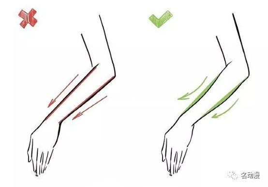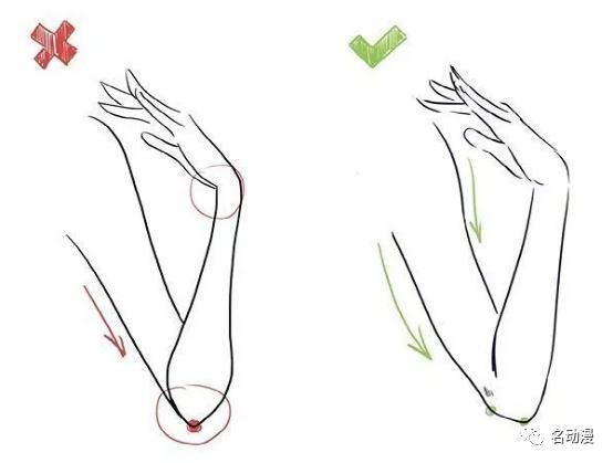 误区:无论是胳膊,还是胳膊和手的转折处,不是单纯的“折过去”就完事了。