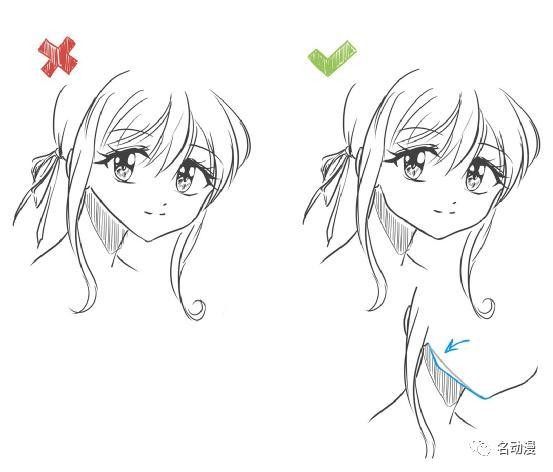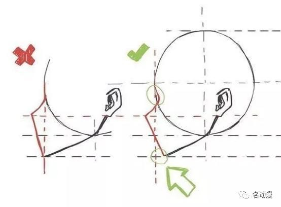 切记,在二次元中的人物侧脸中,鼻子的根部,一定要比下巴更靠前,这样,人物的侧脸才不会有向前鼓的“地包天”感。