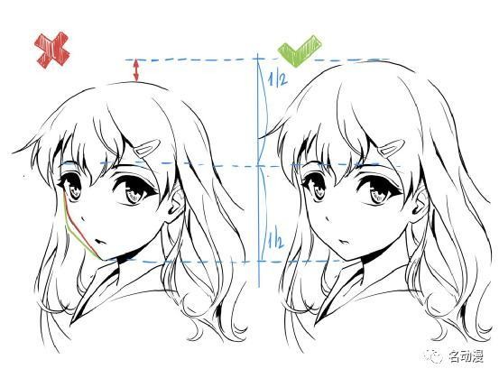 当然如果是二次元少女,可以略微“扁”一些,大概在1:1.5左右。