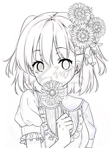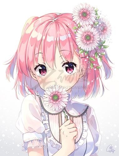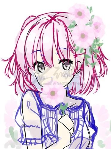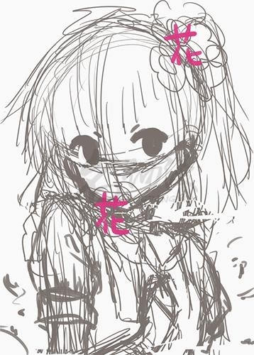 第一步:首先我们要知道自己想要画什么,然后根据脑海中的内容画出一个粗略的萌妹子草稿,五官、花又或者是别的重要道具要标出来,方便后面的刻画。