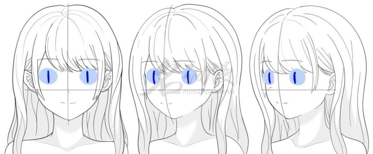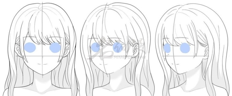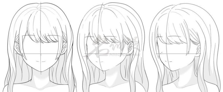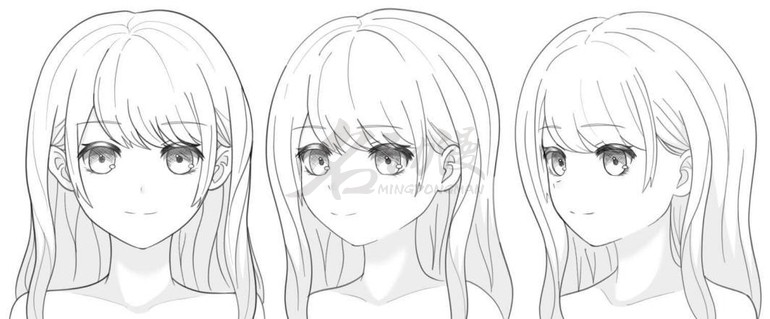 第一步:首先我们先画出不同角度的头部,为了能更好理解脸部的刻画我们可以将头发画出来。