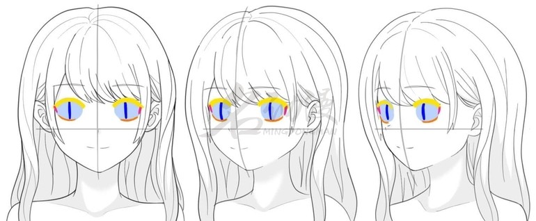 第六步:眼睛的位置和大小非常重要,因为它取决于角色的印象。如果眼睛很大,位置低,看起来年轻,眼睛小,高,看起来成熟。