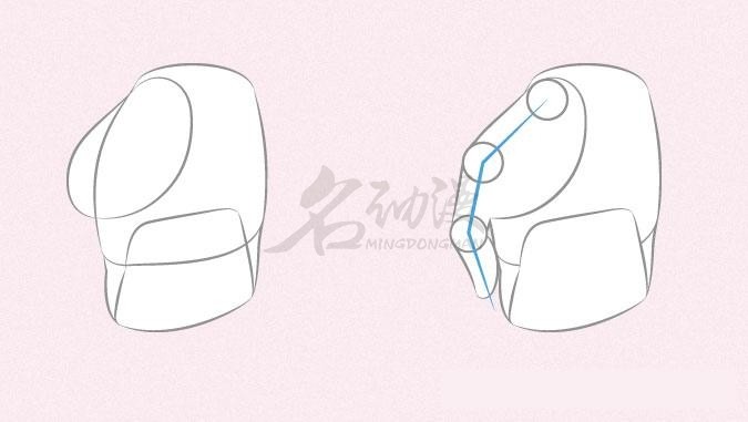 第二步:接着绘制一个粗略的形状来指示大拇指的外部形状(也可以跳过此特定视图并开始单独绘制每个手指)。如图所示: