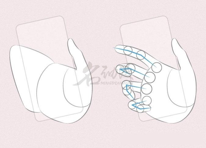 二.画手部动作技巧:拿着手机手部动作的画法步骤