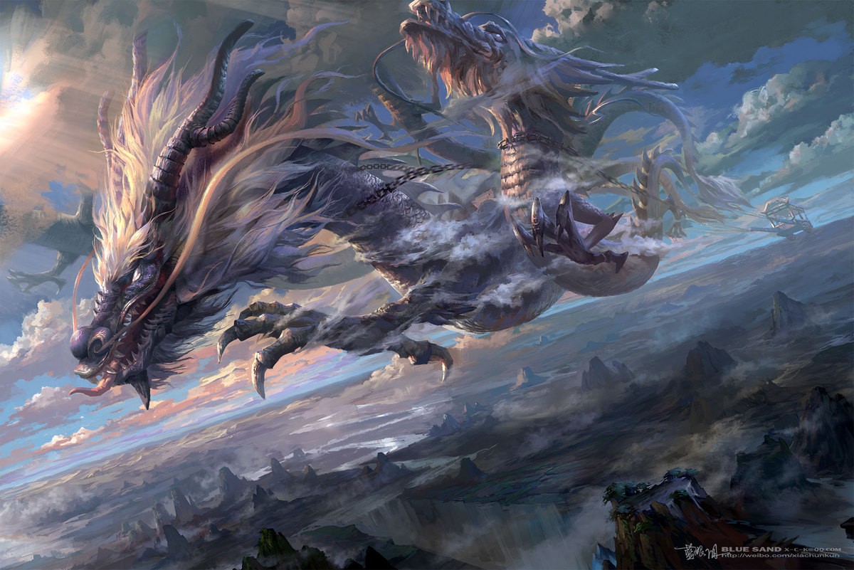 龙是中国神话中善变化、能兴云雨、利万物的神异动物,传说能隐能显,春风时登天,秋风时潜渊,为众鳞虫之长,四灵(龙、凤、麒麟、龟)之首。后成为皇权象征,历代帝王都自命为龙,使用器物也以龙为装饰。《山海经》记载,夏后启、蓐收、句芒等都“乘雨龙”。另有书记“颛顼乘龙至四海”、“帝喾春夏乘龙”。前人分龙为四种:有鳞者称蛟龙;有翼者称为应龙;有角的叫螭龙,无角的叫虬。上下数千年,龙已渗透了中国社会的文化,除了在中华大地上传播承继外,还被远渡海外的华人带到了世界各地,在世界各国的华人居住区或中国城内,最多和最引人注目的饰物仍然是龙。因此,“龙的传人”、“龙的国度”也获得了世界的认同。龙是华夏民族的代表!是中国的象征!