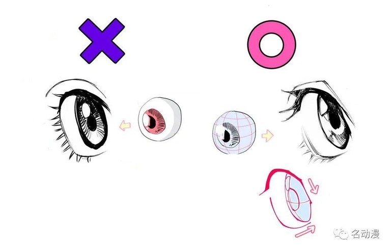 1、所以我们在画的时候,如果不注意从立体的角度去考虑眼睛,在侧脸的状态下,很容易就会画出下面(左图)的效果。