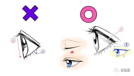 2、其实不只是圆眼睛需要注意“连接”,其他形状的眼睛也同样如此,上下眼睑对不齐,对于人物气质也是会非常伤筋动骨的哦!