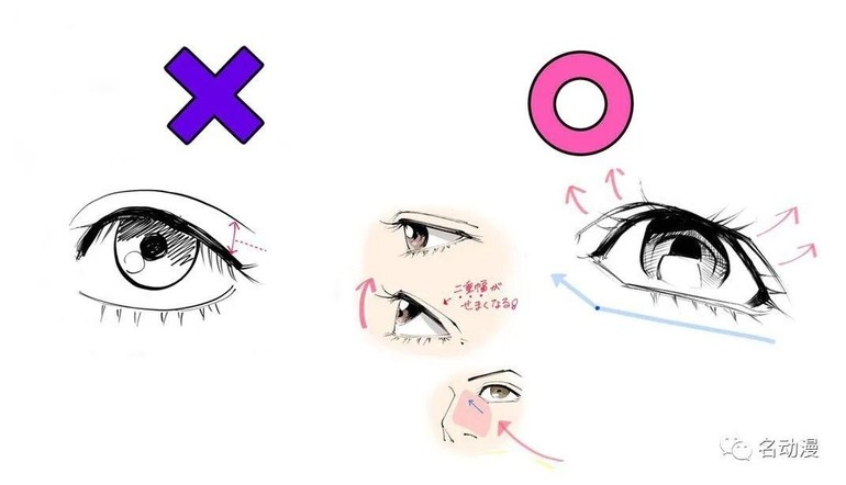 画日系人物的同学都知道,眼睛要大一些才好看,但很多同学就只注意到了眼黑的“圆”,而忽视了眼部整体的结构也要做到“自圆其说”,结果就是上下眼睑的“错位”导致整个眼睛都歪了...