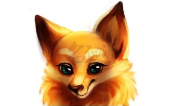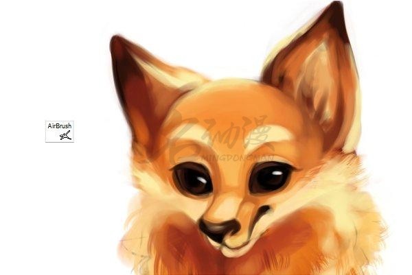 选择一个喜欢的颜色,用涂抹笔触或者排线的方式涂画小狐狸的色彩,然后用其同色系的深色绘制背部的花纹。