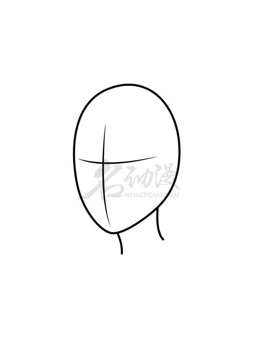第一步:首先我们画出我们画出一个好看的头颅,不用画出五官只需要画出十字定位线就行。