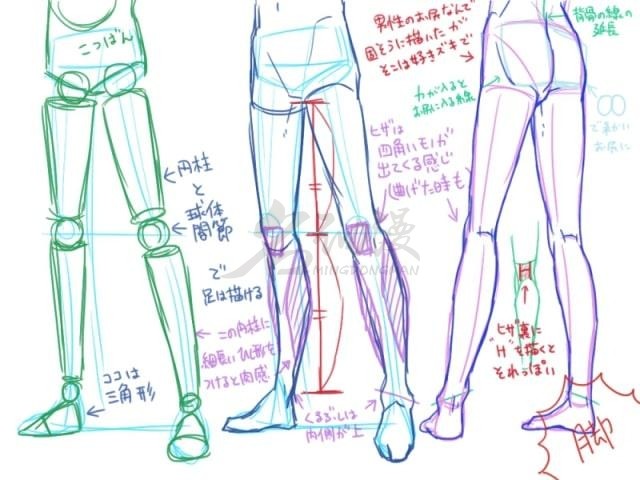 还有一个要点要记住,从腹股沟到膝盖的长度等于从膝盖到脚踝的长度,画画时注意这点就不怕将腿画得很长很长啦。