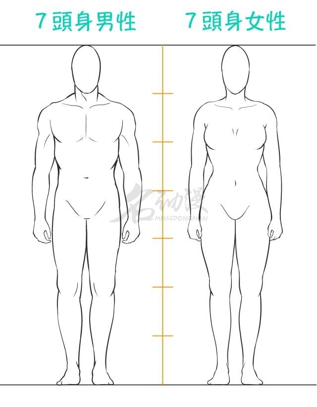 在同样是七头身的男性和女性中,上半身的肋骨和下半身的骨盆的大小不同,所以身体的外观也各不相同。男性的肋骨是宽的,所以上半身看起来很大。 女人的臀部看起来比上半身大,因为骨盆比肋骨宽。