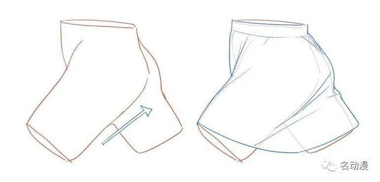 1、比如当人物抬起一条腿的时候,从正面看,抬起腿的那一侧裙子,也会相对应的抬起。