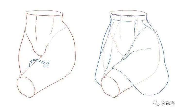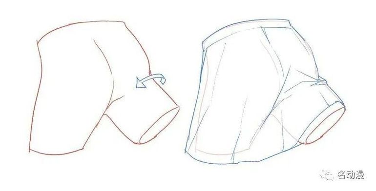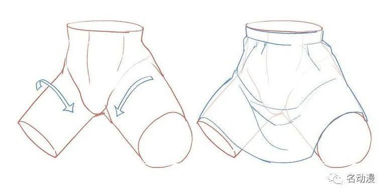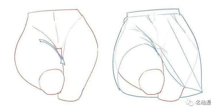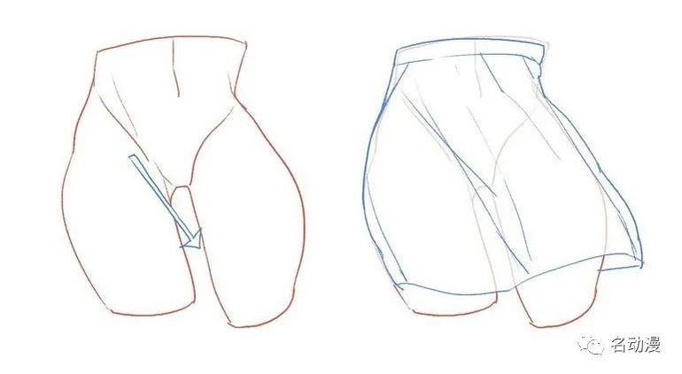 尤其要注意的是臀部结构和大腿根部的转折,以及这个转折会反映到褶皱上。