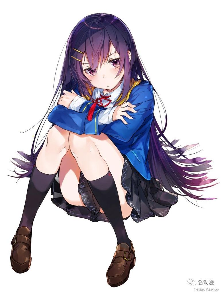 这种坐姿也是动漫中的一种萌属性,尤其是娇小的萌妹子,在看到她们抱膝而坐,呈现出那种蜷缩起身子的模样,真的是令人心生怜爱,会不会有种想要守护她的感觉?