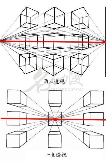 很多同学都知道常见的透视是有一点透视、两点透视、三点透视。而所谓的“一点两点三点”指的就是具体的消失点的数目。其中的一点透视和两点透视,都是集中在同一条水平线上的。