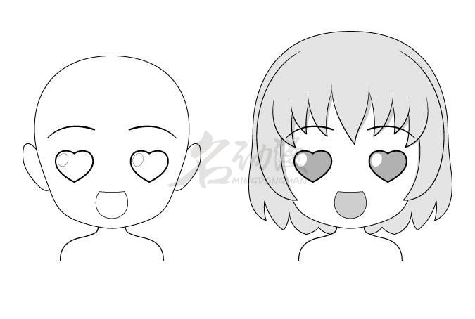 可以简单地用两颗心画出眼睛。请注意,这不一定是对一个人的爱。这可以用来表达对角色喜欢的任何事物的情感。画眉毛稍微抬起,画出类似于椭圆形的嘴巴,顶部被切掉。