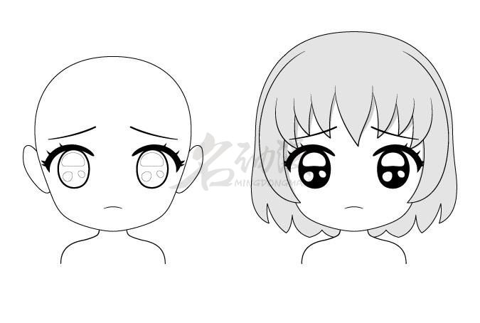 第二:可怜巴巴(乞求式)的小狗眼人物表情画法