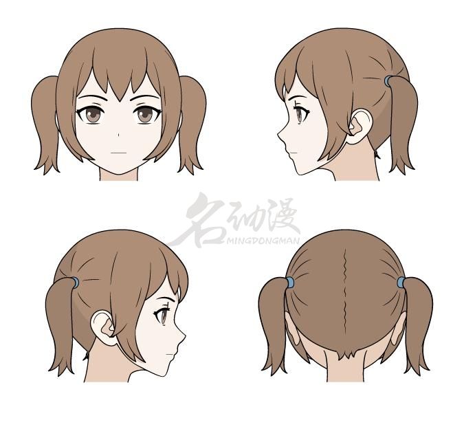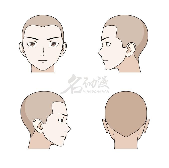 从正面看,头顶接近半圆。从侧面看,头部可以画成略呈椭圆形。