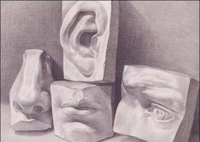 5.尝试开始画人像,先不要急着画真人。买书进行临摹,尝试画名家的石膏雕塑,石膏五官。