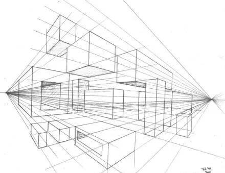 2.排线学好后开始学画几何体,学习各种物体的透视,就是把物体在平面上显示出物体的空间感立体感,物体的上下左右前后不同距离的变化。每个物体都是由相似几何体体所构成。(比如可以把人头想象成球体)