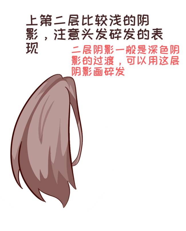 5、上第二层比较浅的阴影现,注意头发碎发的表现。二层阴影一般是深色阴影的过渡,可以用这层阴影画碎发。