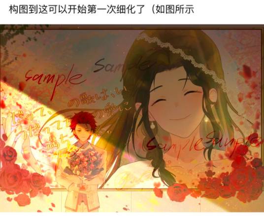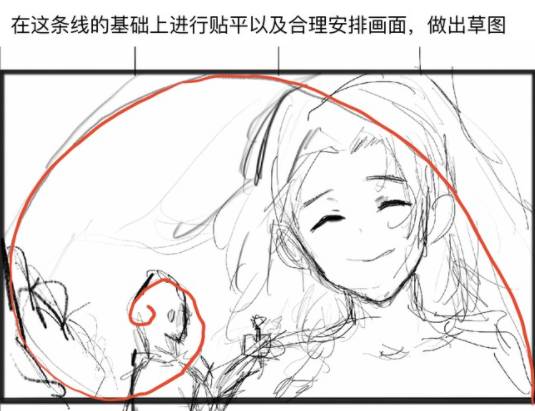 2、在这条线的基础上进行贴平以及合理安排画面,做出草图。