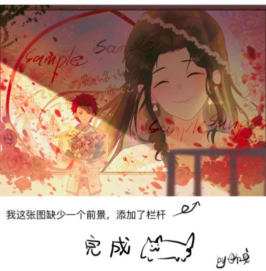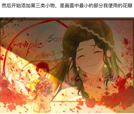 5、然后开始添加第三类小物,是画面中最小的部分我使用的花瓣。