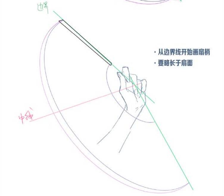 9、接下来就是画扇骨了,注意扇骨跟折痕是错开的。给扇柄加个厚度,最后就画完了。