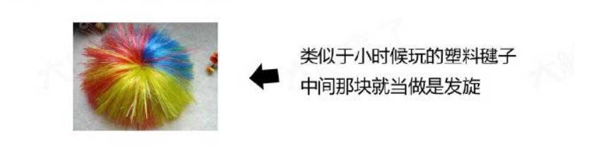 从发旋点呈放射状,或者从生好的发线生长,有方向性,发旋在头顶靠前的位置。