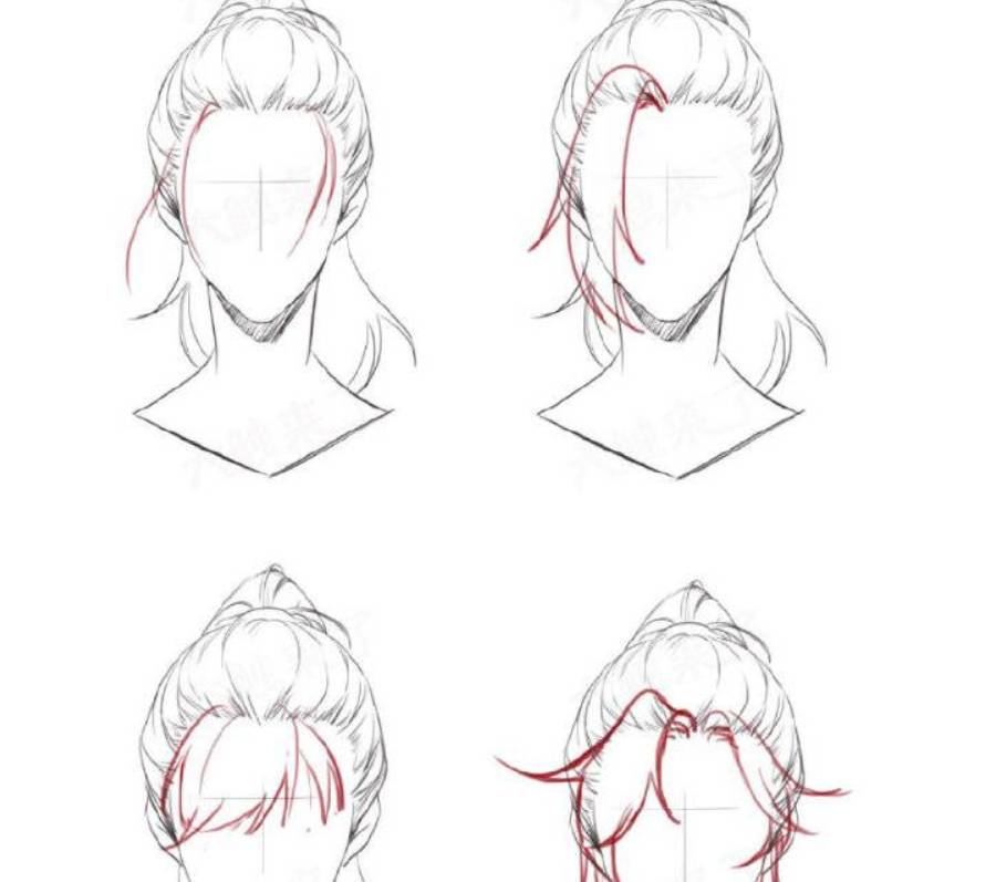 头顶的发量要有厚度,不然就会显得发量很少。不能只是画一个普通的弧度。单纯的束发,因为头发都束在一起很容易单调,更应该在不变中找变化。