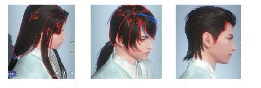 古风男生头发的画法。