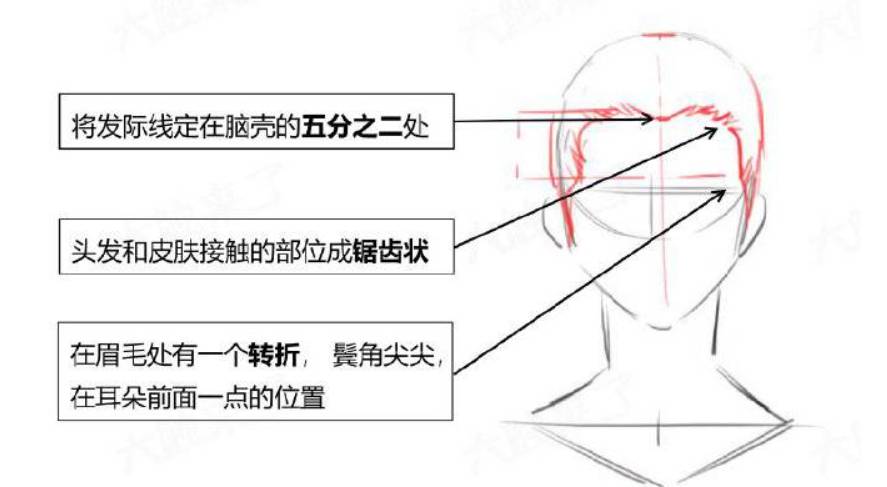 在画头发之前,需要定好发际线的位置。