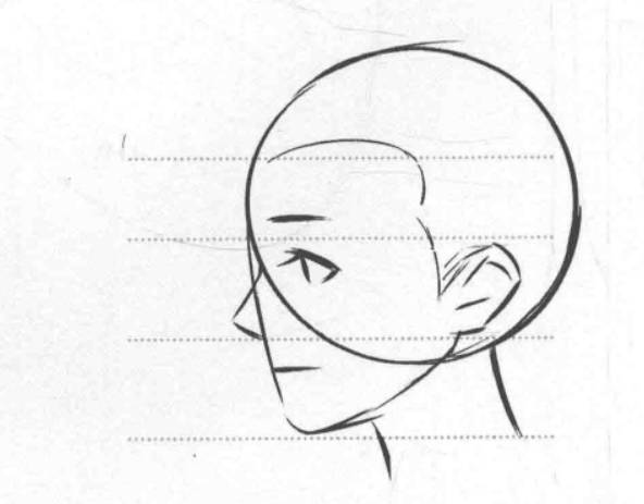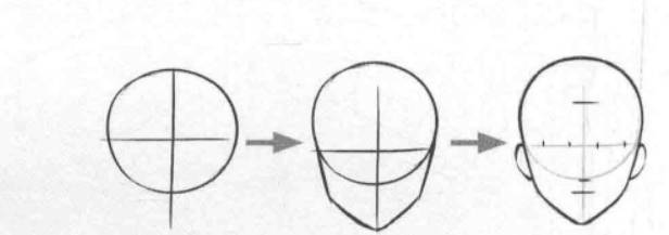 绘制头部的时候先画出圆形,再画出十字定位线,然后画出人物的脸型及五官的位置。