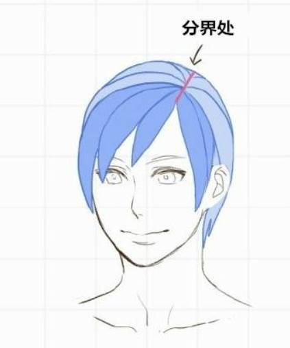 画了后脑勺部分的头发。虽然说有分界处,但并不一定非得从分界处那里拉线条出来。我倒是觉得只要有意识到:“这里是头发的分界处”会比较好。