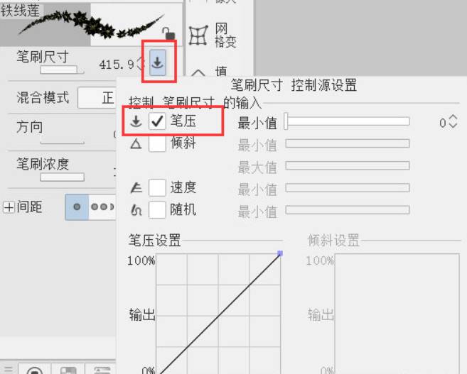 优动漫做笔刷的时候,带状的带图案的笔刷如何让它随压感变大变小?