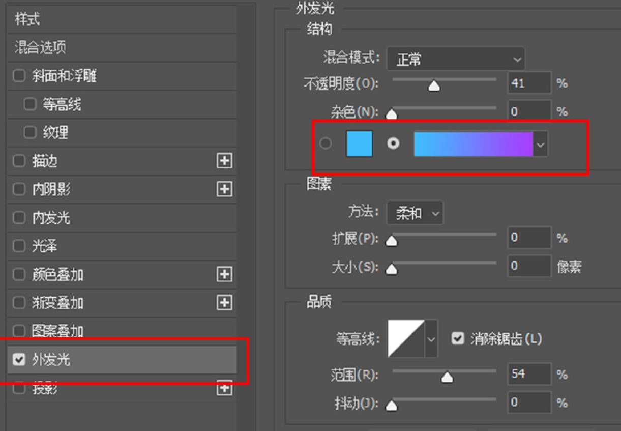 和那块棉布比起来很明显丝绸在明暗交界线附近的颜色要更多些。不过还好我们有PS,命令能做的出来的效果为什么要用手画?首先,准备一个PS软件和一个图层。然后,双击图层进入【图层样式】,选择【外发光】。