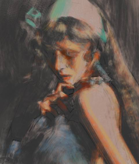 06、整理转折面。经过上面五个步骤,画面所有的调子就全部铺完了,剩下就是整理一下人物的结构转面就可以了。塑造方式和素描一样。