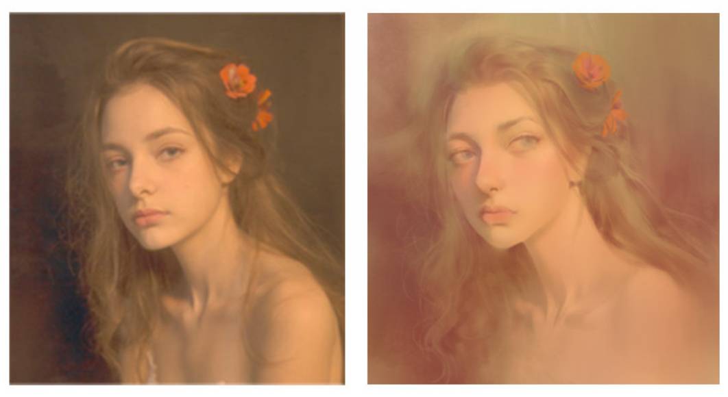用软笔把画面里的固有色刷一刷,因为画的是个女孩子,其实整个过程和化妆区别不大。面部画些腮红,眼皮刷点冷色,最后画上唇彩,戴上头花~