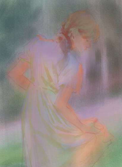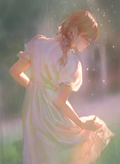 白色是一种很容易受环境光影响的颜色,所以在绘制白色前,确定环境色非常重要。背景确定下来,整幅图的调子也就定下来了,环境光,渲染光,这些杂七杂八的光色也就都确定下来了。