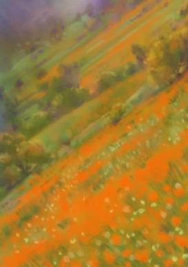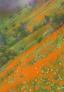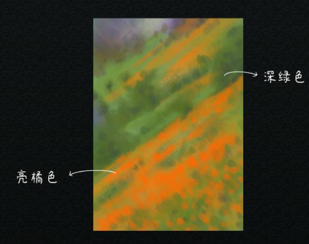 把亮橘色点上以后,花朵部分的层次感就变得丰富起来。