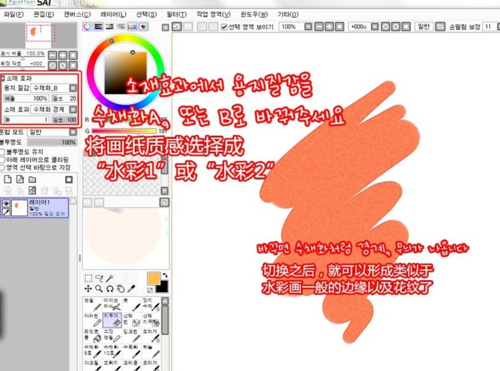 1、将画纸质感选择成“水彩2”或“水彩2”。切换之后,就可以形成类似于水彩画一般的边缘以及花纹了。