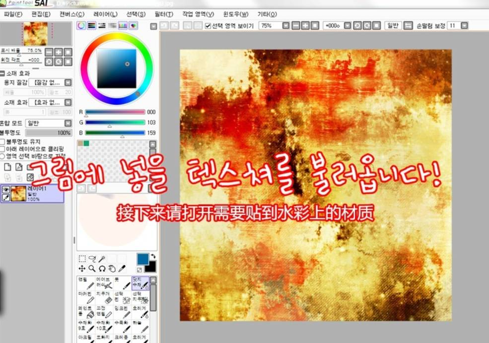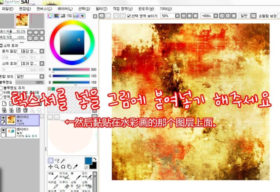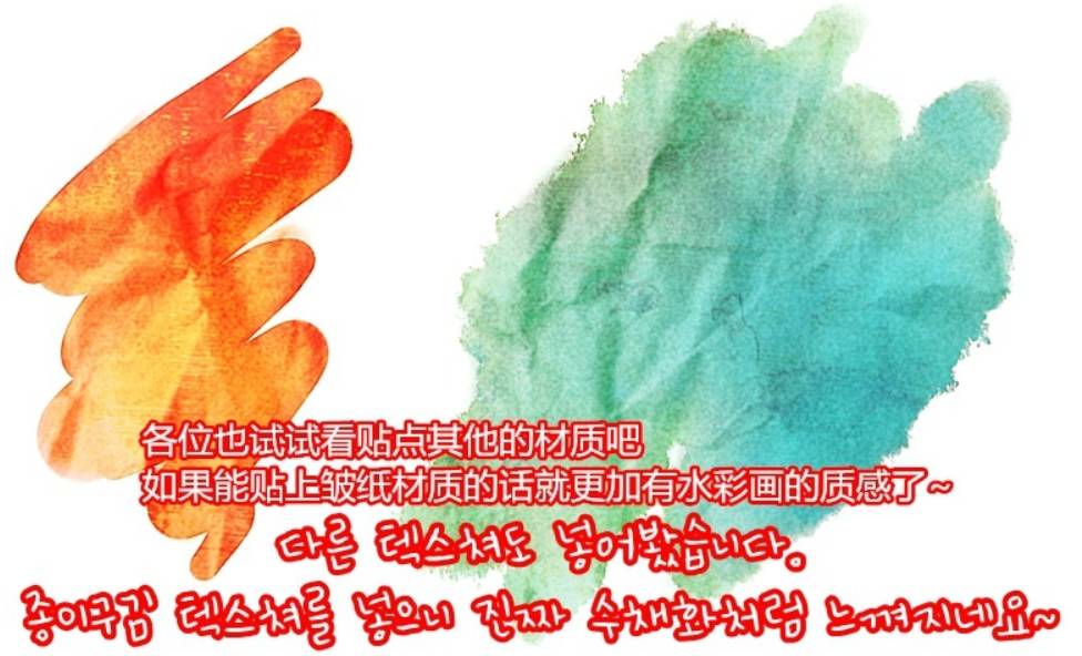 9、各位也试试看贴点其他的材质吧。如果能贴上皱纸材质的话就更加有水彩画的质感了~