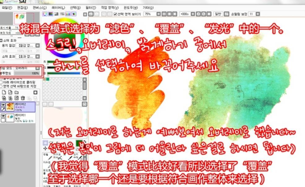 我觉得“覆盖”模式比较好看,所以选择了“覆盖”。至于大家选择哪个还是要根据符合画作整体来选择哦。