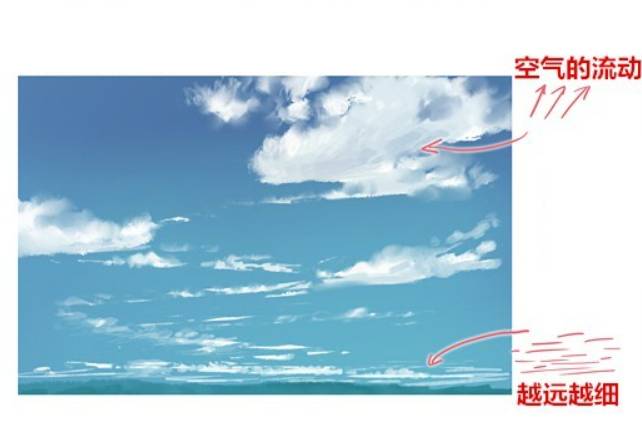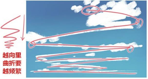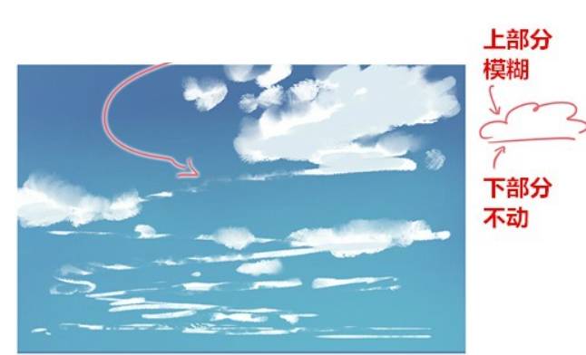 ③给近端的云添加笔触,远端的云增强其模糊感,类似于细线来描绘。
