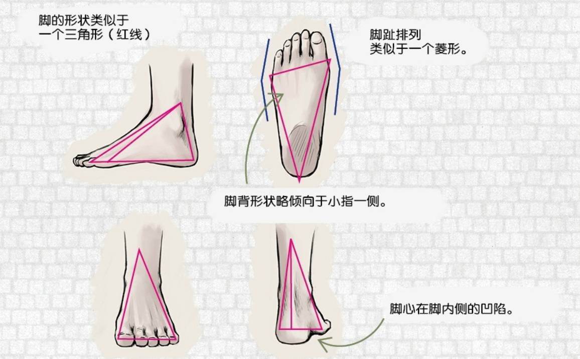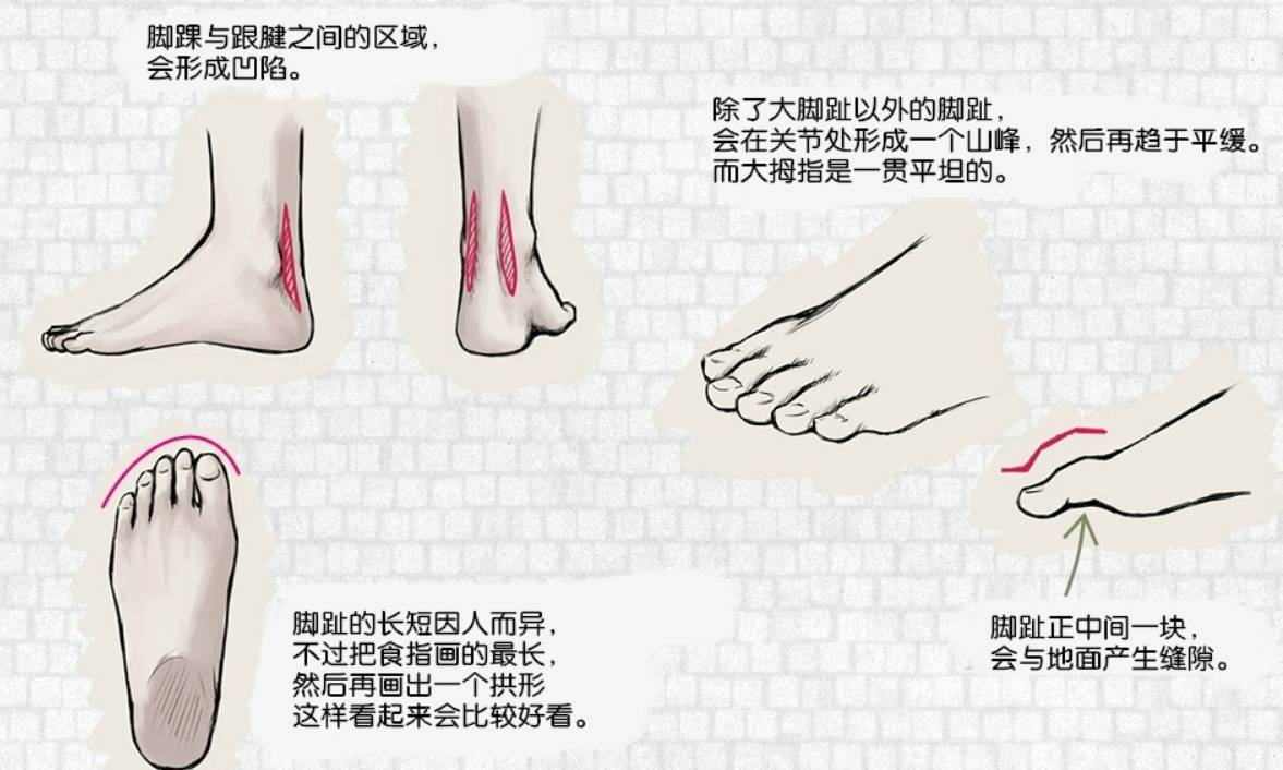 脚趾的长短因人而异,不过把食指画的最长。然后再画出一个拱形,这样看起来会比较好看。